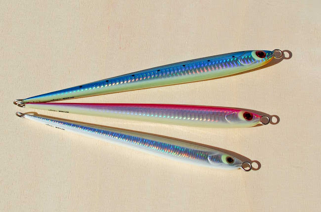 Un altro lungo atipico, molto sfarfallante in caduta e molto reattivo e "leggero" nel recupero; grandioso con pelagici e ricciole in modo particolare, ma è attrattivo per qualunque pesce, uno dei pochi lunghi a rendere bene anche quando le preferenze sembrano essere per i corti; le taglie che uso di più sono 180, 230 e 280, ma anche lo sciabolone da 400 ci ha dato gran belle catture.